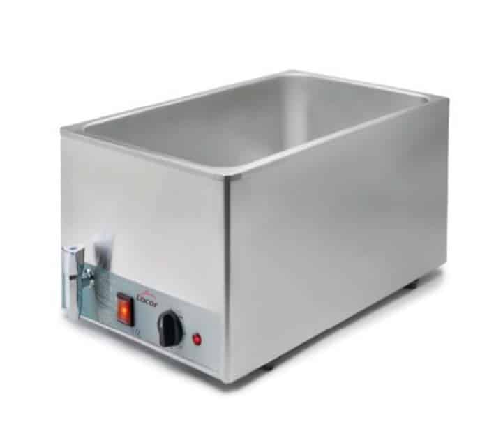 Bain-marie électrique professionnel Lacor 69036, adapté au standard Gastronorm GN 1/1 de 150 mm. Disponible avec ou sans plateaux Gastronorm en acier inoxydable 18/10. Puissance de 1 200 W, bouton de sélection de température jusqu’à 70ºC. Capacité de 24 litres, robinet de vidange pratique. Matériau : Métal.